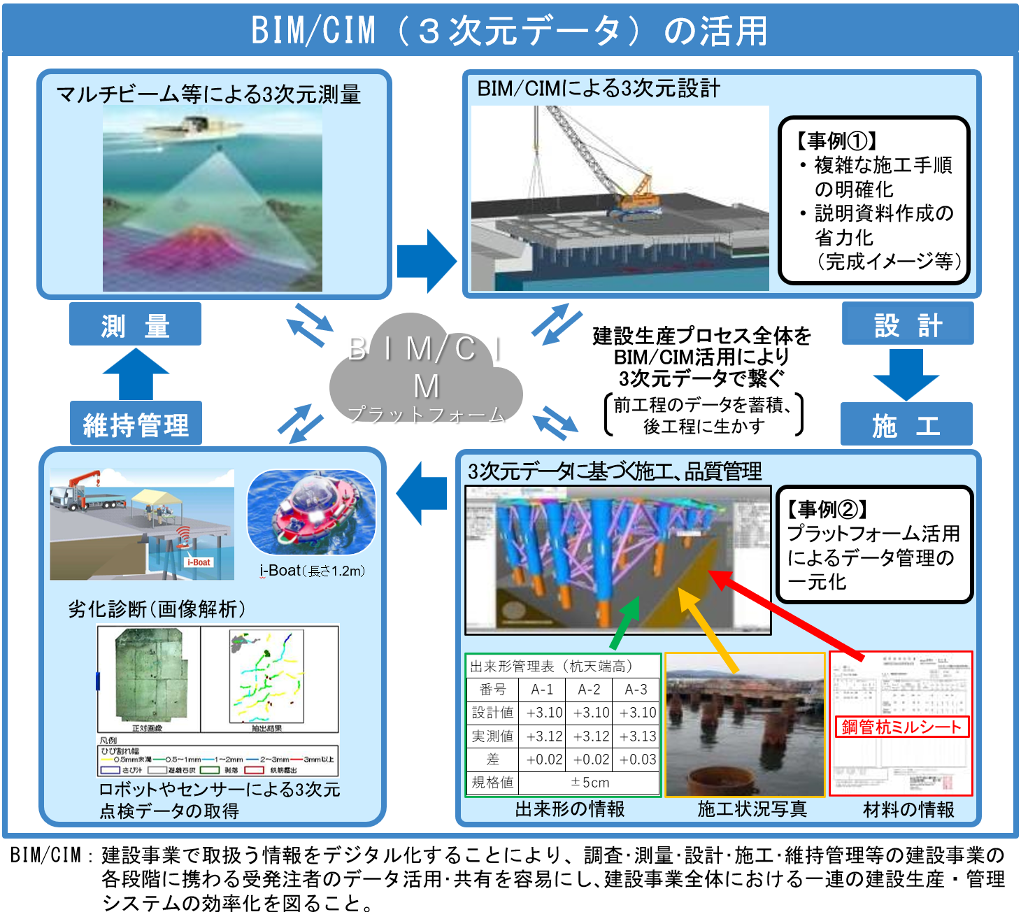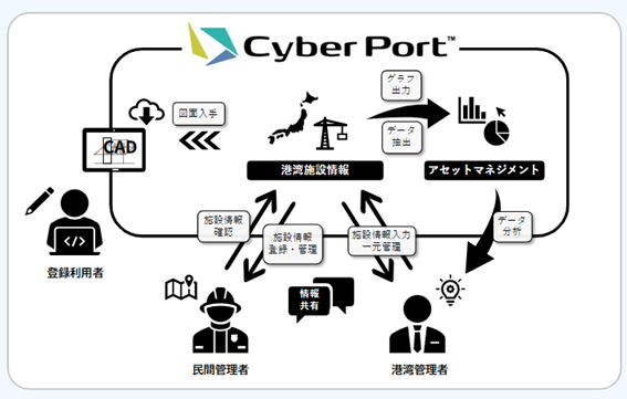 港湾分野のデジタル化は、BIM/CIMや自動化技術だけでなく、港湾運営全体をデジタル化する「サイバーポート構想」として展開されている。施設の維持管理、物流手続き、入出港関連手続きなどを取り扱うデータプラットフォームの構築を目指すものだ。