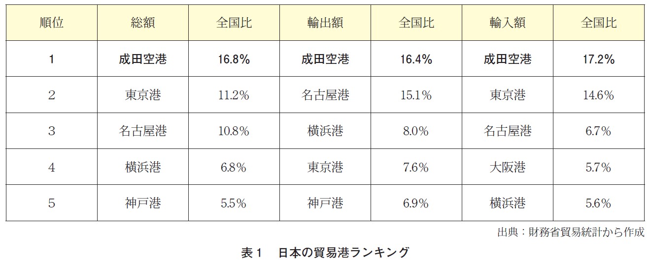 成田空港は、国際線利用者数、国際貨物取扱量ともに国内空港トップのシェアを占めており、特に国際貨物については、金額ベースで我が国最大の貿易港であるなど、日本と海外とのメインゲートウェイの1つとなっている(いずれも2024年実績、表1)。