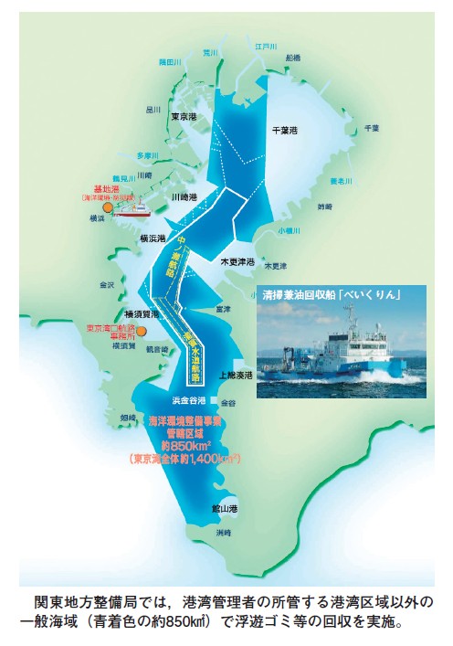 浮遊ゴミ、流木、流出油は川や海の汚染原因となるばかりでなく、海難事故や生態系への悪影響の原因にもなる。そのため、東京湾及びその流域において浮遊ゴミ等の回収・処理を適切に実施する必要がある。