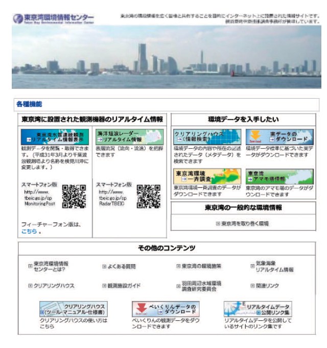 東京湾を「美しく豊かな東京湾」にするには、「東京湾周辺海域」で行っている、「下水道」や「河川」の取組も重要である。下記に示すHP にアクセスしていただくと、今回紹介できなかった「下水道」や「河川」の「具体的な施策展開」も記載されているので参考にしていただきたい。